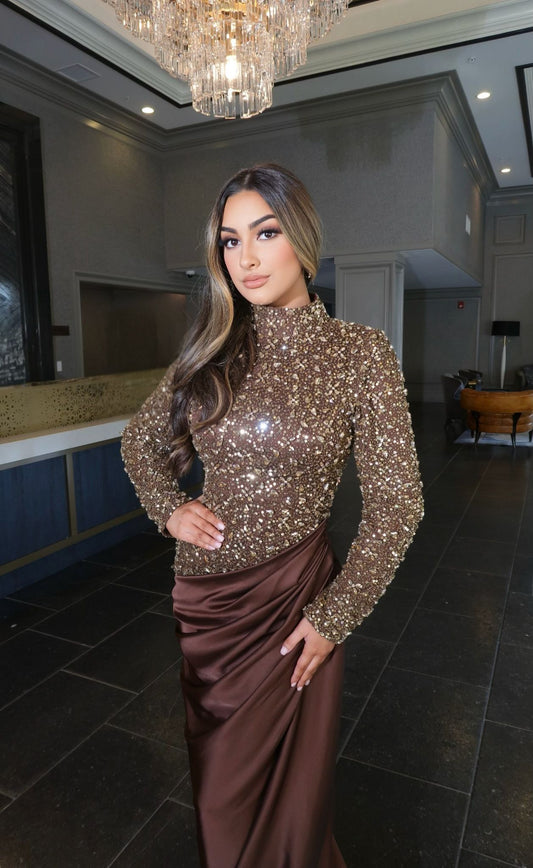 Zahra Sequin Modest Neckline Long Sleeve Embellished Dress