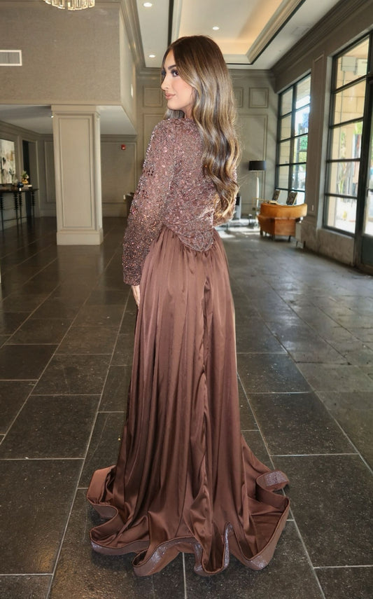 Dalia Long Sleeve Beaded Sequin Modest Tassel Gown